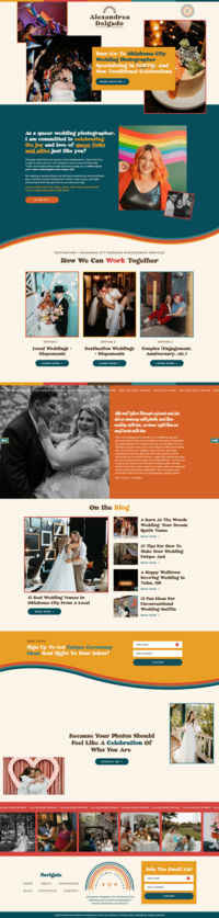 Alex is an OKC wedding photographer with a focus on non-traditional weddings (in other words, Alex’s work is right up our alley). She booked our Intentional Changemaker Experience (a now retired service) and we completely revamped Alex’s website and blog.